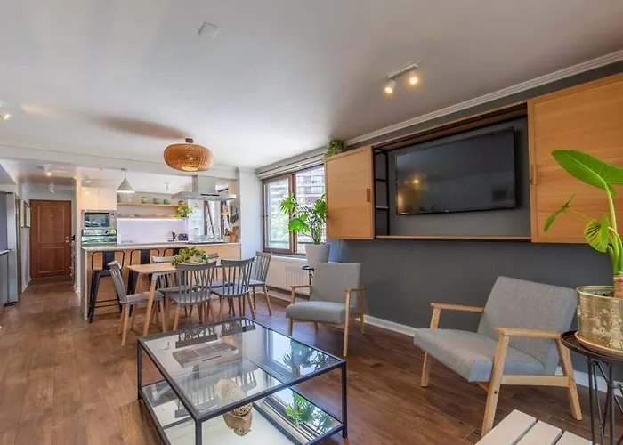 Departamento Sebastian, Elegancia En El Golf, Metro, Terraza Espaciosa Santiago apartment is located 2.3 km from the friendly Bicentenario Urban Park and 8 minutes' walk from Sala de Arte Las Condes. Wi-Fi is available for guests' business or leisure needs.